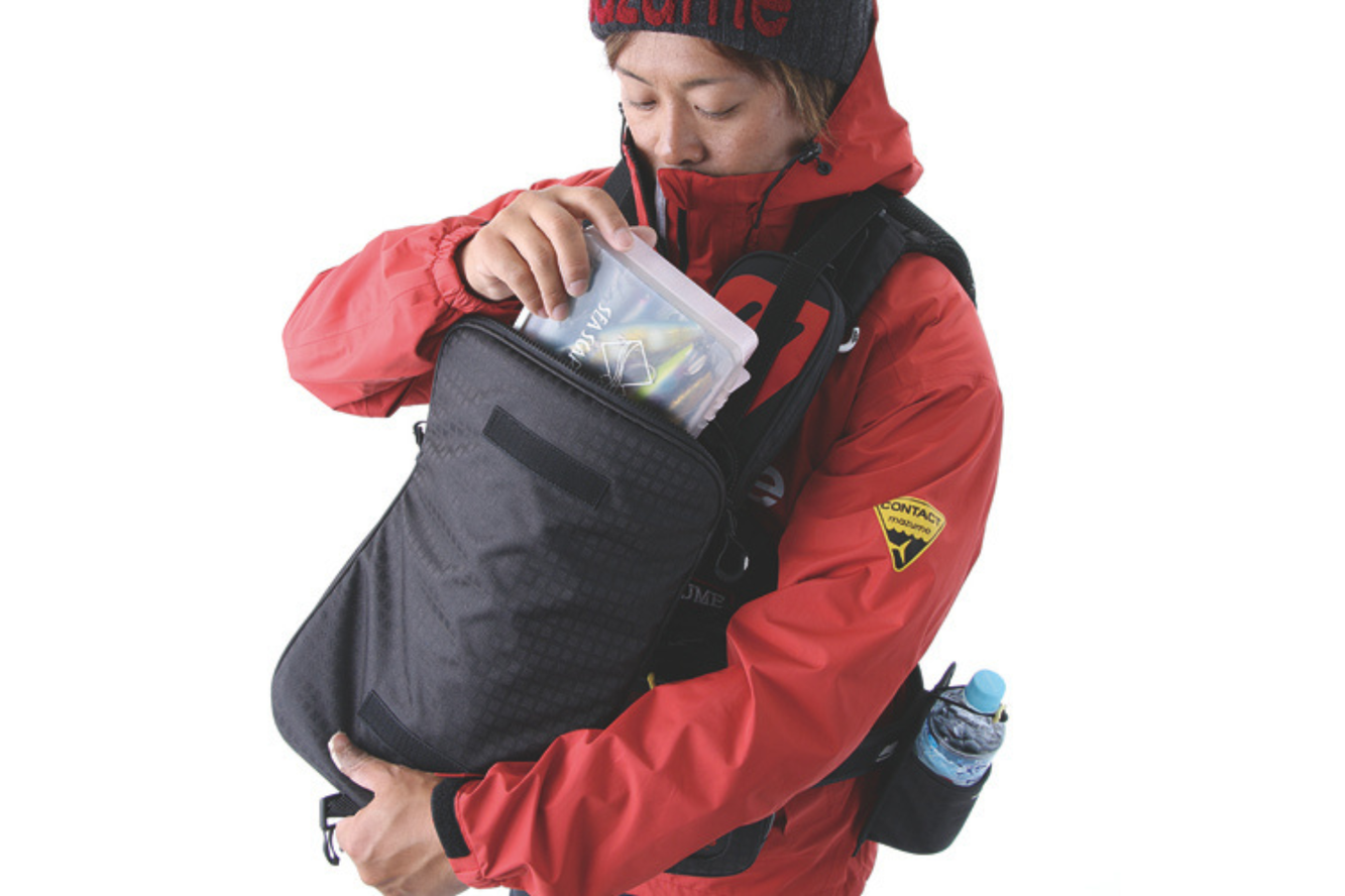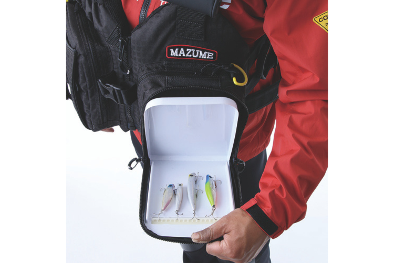 - Integrierte Köderboxaufnahme in der Vordertasche. Kunstköder bis ca. 14 cm schnell griffbereit.