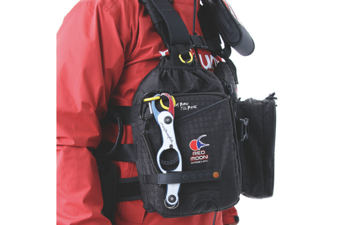 - Abnehmbarer Zangenhalter an der Seite. Vordere Schlaufe als Rutenhalter.