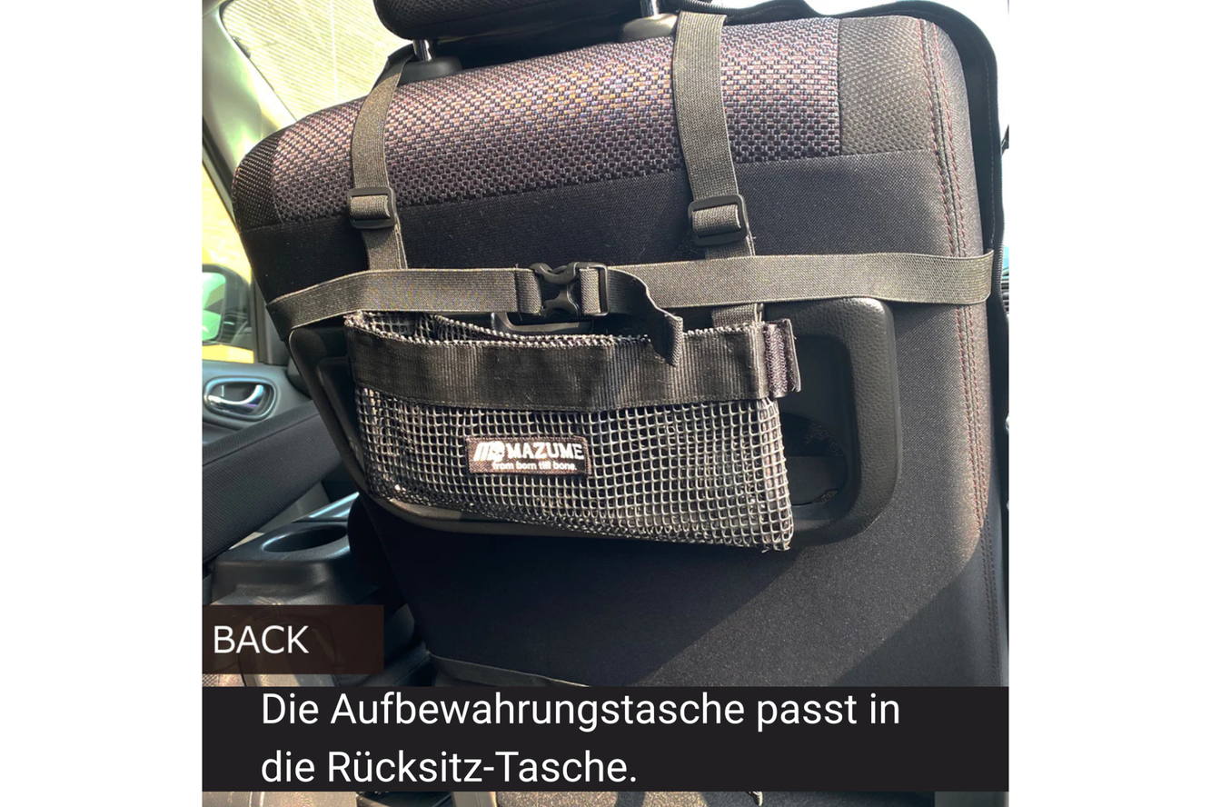 Leicht anzubringen: Nehmt einfach das Cover und stülpt es über die Kopfstütze eures Autositzes. Anschließend hinten mit Hilfe der Schnallen befestigen. Die Hülle, in der das Cover geliefert wird, dient als Tasche für den Rücksitz, wenn das Cover am Autositz angebracht ist.